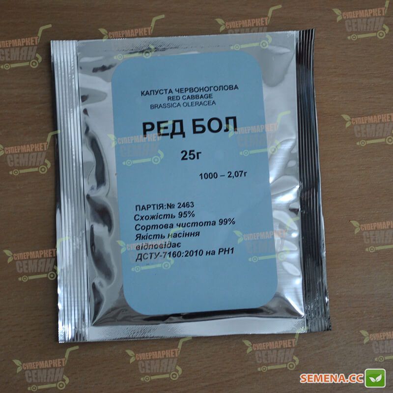 Семена фиолетовой капусты Редбол - это среднепоздний сорт краснокачанной капусты. Период созревания капусты Редбол длится 100-105 дней. Кочан синей капусты Редбол округлый, достигает веса 1,5-2 кг, головка темно-фиолетового цвета, не растрескивается.