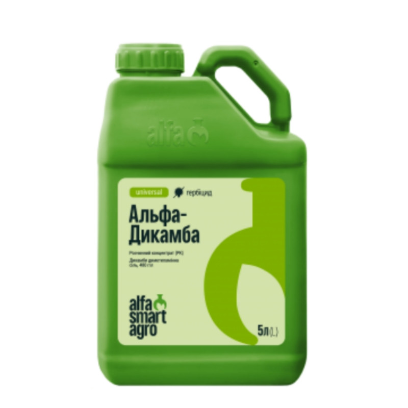 Альфа-Дикамба - это системный селективный гербицид послевсходового действия. Предназначен для борьбы против однолетних и многолетних двудольных сорняков, в том числе устойчивых к 2,4-Д и МЦПА.