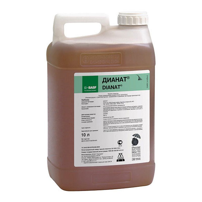 Дианат - это системный селективный гербицид послевсходового действия. Предназначен для борьбы против однолетних и многолетних двудольных сорняков, в том числе устойчивых к 2,4-Д и МЦПА.