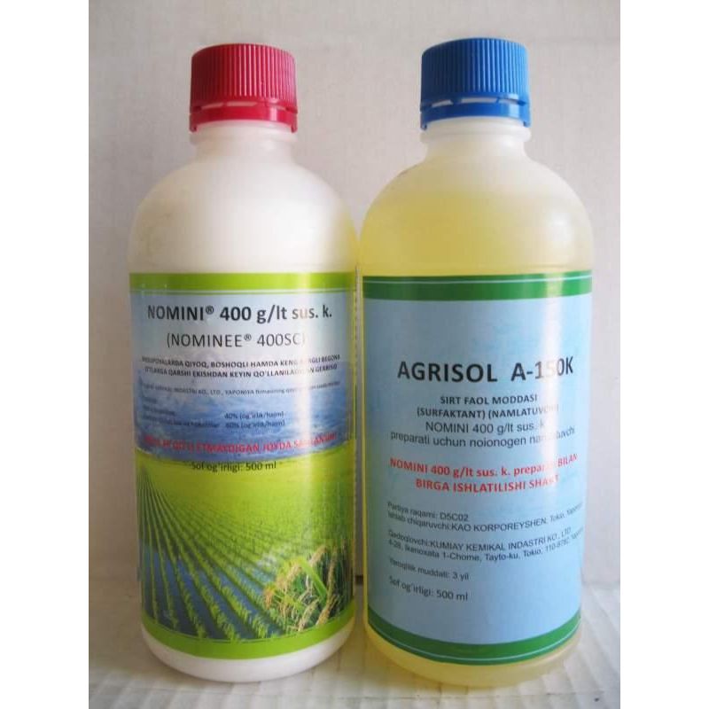 Номини 400 - это гербицид который используется после посева риса и защищает его от злаковых и двудольных сорняков и клубнекамыша.