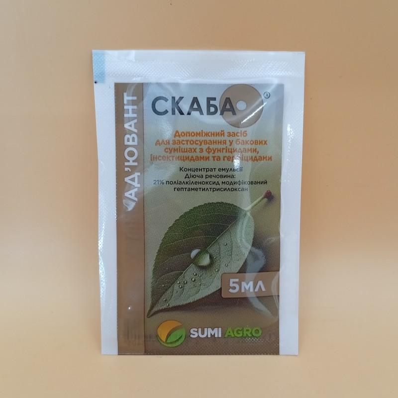 Скаба - это прилипатель, который применяют чтобы повысить свойства фунгицидов, инсектицидов и гербицидов.
