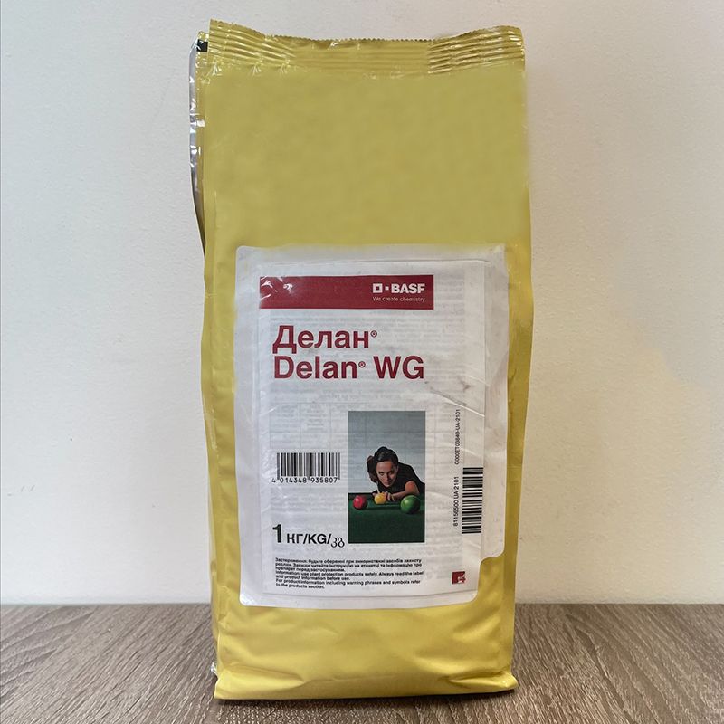 Делан – контактный фунгицид, обладающий профилактическим действием. После проведения обработки растение покрывается дождеустойчивым защитным слоем, эффективно подавляющим прорастание спор грибов, при этом, некоторая часть действующего вещества составляет резервные депо фунгицида на поверхности листа, обеспечивая стабильное и долговременное фунгицидное действие.