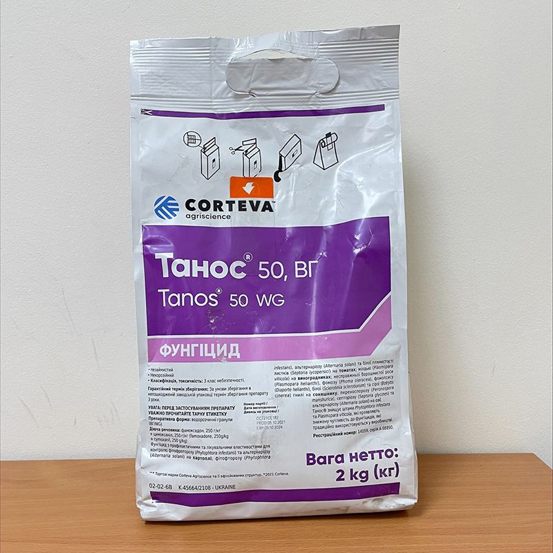 Зооспоры при попадании на поверхность листа обработанного фунгицидом Танос гибнут в течение 2-х секунд. Комбинация активных компонентов приводят к значительному возрастанию эффекта в борьбе с альтернариозом, по сравнению с остальными средствами.