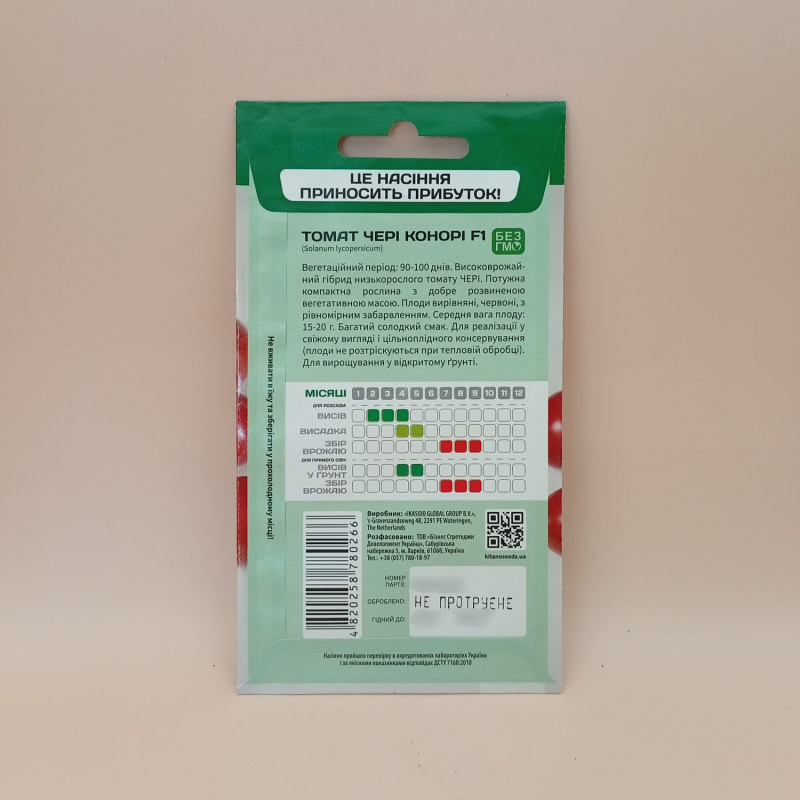 Конори F1 семена томата черри (Kitano Seeds). Детерминантный ранний черри-томат. Срок созревания 90 - 95 дней. Ценность Конори F1: дружное созревание, толерантность к вертициллезу, фузариозу расы 3 и бактериальной точечности. Растение мощное, компактное, с хорошо развитой вегетативной массой. На одной кисти формирует по 6-8 круглых ярко-красных плодов по 15-20 грамм. Они имеют аппетитный промтоварный вид и сладковатый привкус. Используются для употребления в свежем виде и консервации целиком. Гибрид подходит для культивирования в поле и временных пленочных укрытиях.