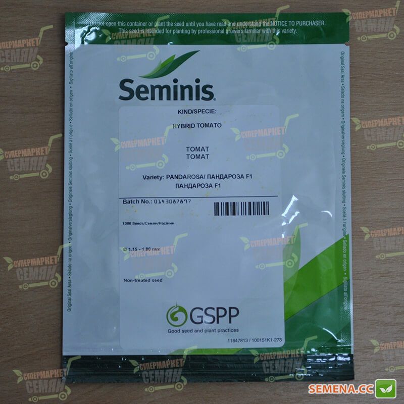 Пандароза F1 - гибрид томата индетерминантного розового. Растение ранее (период вегетации 70 дней с момента высадки рассады), сильнорослое с крупными листьями и мощной корневой системой. Отличная транспортабельность. Плод плоско-округлый, темно-розовый, плотный, весом до 250 г. Отлично сохраняет товарный вид. Великолепный вкус.