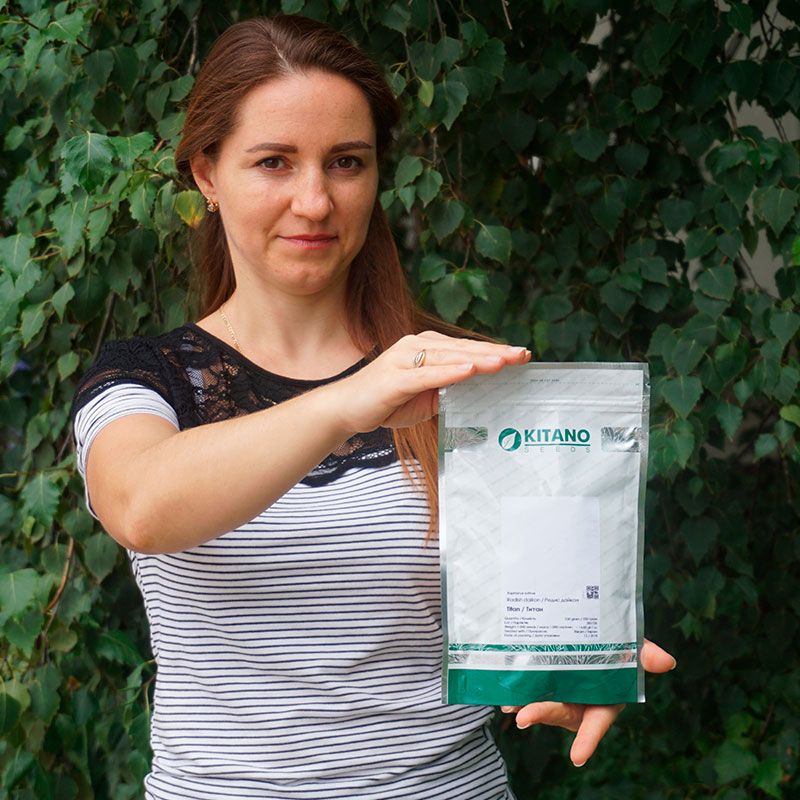 Титан дайкон семена редьки (Kitano Seeds). Срок созревания 45- 50 дней. Лидер осенних продаж среди редисов Дайкон! Используется для употребления в свежем виде в различных салатах. Растение вертикальное, с ботвой темно-зеленого цвета. Корнеплоды чисто-белые, цилиндрические, зауженные к концу, длиной 45-60 см, нежные и немного островатые по вкусу. Сорт не подвержен позеленению головки, хорошо сохраняется в поле, не растрескивается, хорошо транспортируется. Титан устойчивый к болезням. Совет: высадка в гряды облегчает уборку урожая.