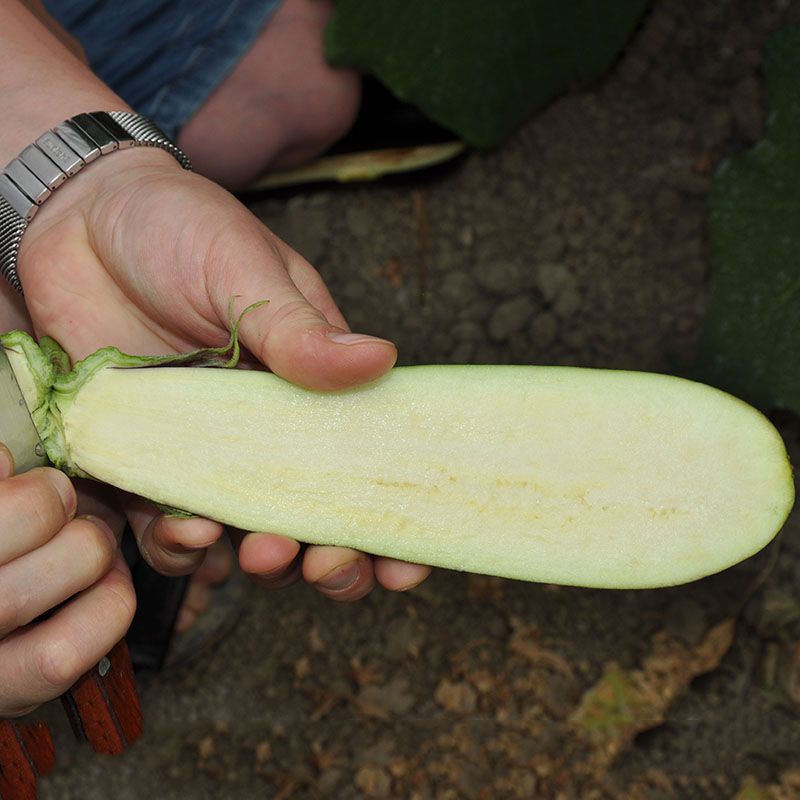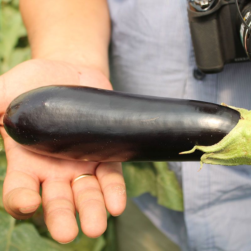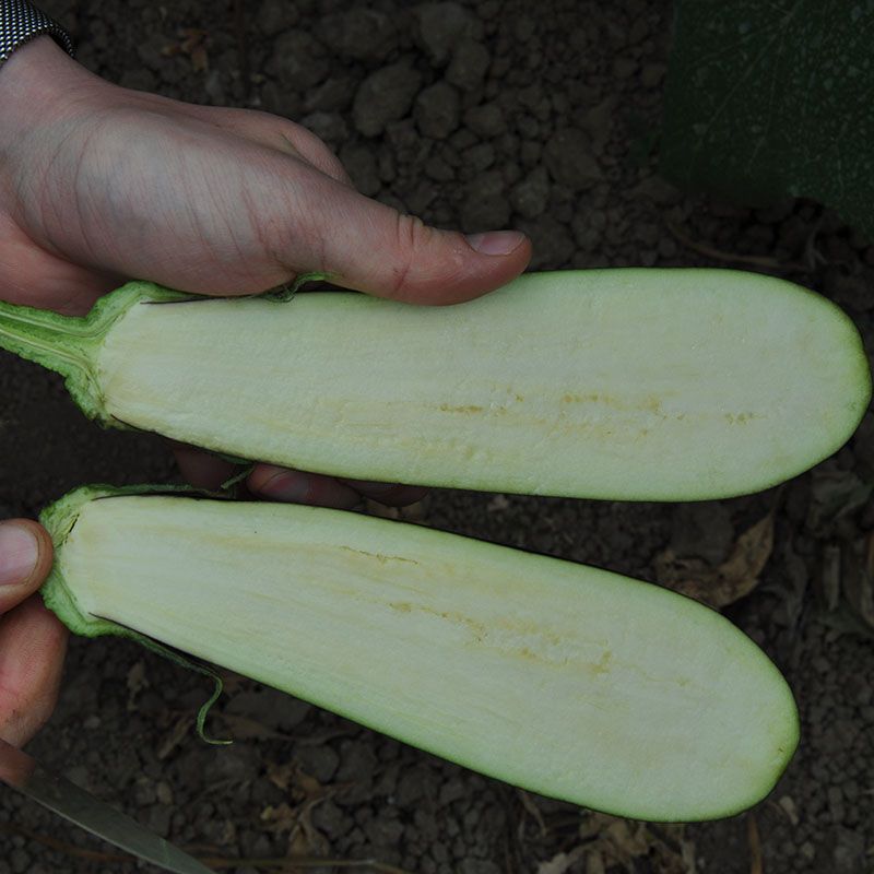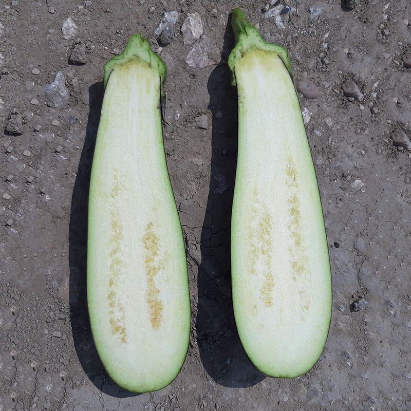 Характеристика плодов – Плоды цилиндрические, темно-фиолетовые, глянцевые, средняя масса 200-300 г. Длина плода – 19-22 см, диаметр – 7-8 см. Мякоть белая, плотная, без горечи. Шипы на чашечке встречаются редко или отсутствуют вообще.