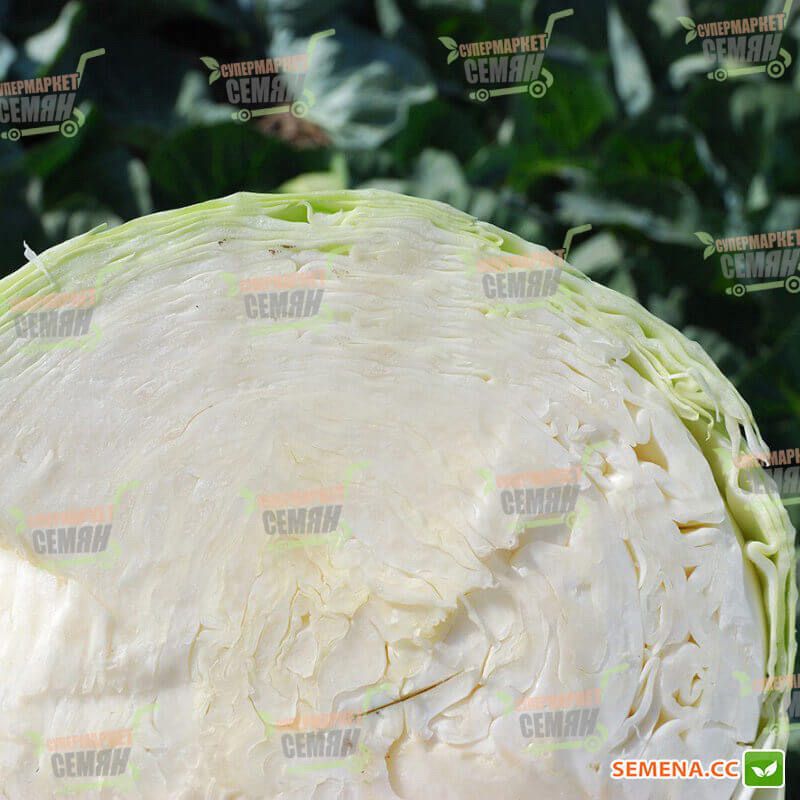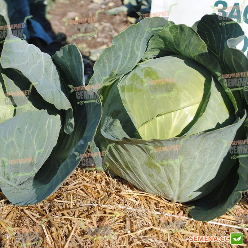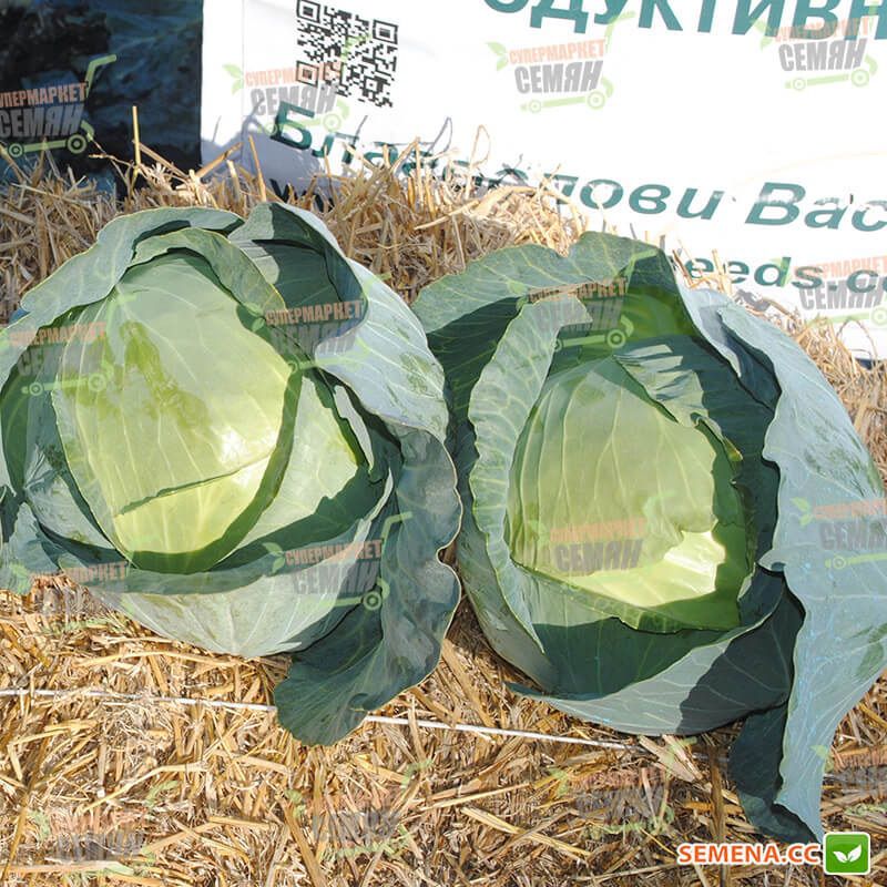 По фотографии выше Вы можете ознакомится с товаром. Как Вы можете увидеть головки однородные, компактные, округлой формы, светло-зеленого цвета, массой около 4 килограмма, они очень плотные, именно это свойство позволяет перевозить плоды на дальние расстояние. Листья тонки, они имеют восковой налет, который притаманный чуть ли не для каждой капусты. Корневая система хорошо развита, благодаря этому корни не вымываются.