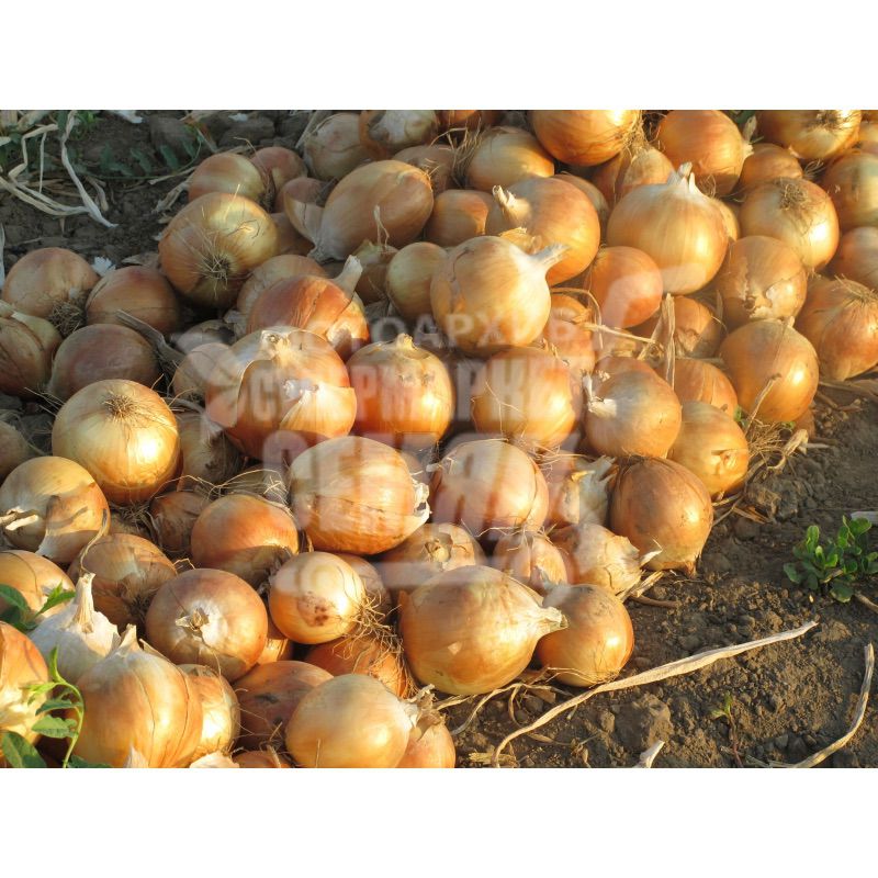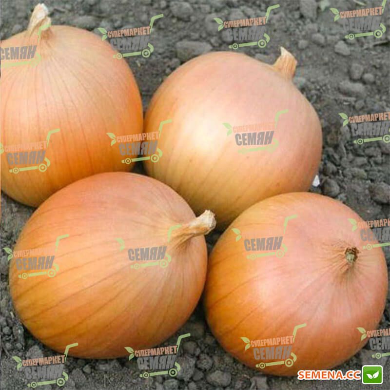 Характеристика плодов – Луковица округлая, слегка каплевидная, темно-золотистого цвета, с тонкой шейкой, массой 110-170 граммов и 10-12 сантиметров в диаметре. Наружные чешуи плотные, а внутренние очень сочные и хрустящие. Высокое содержание сухих веществ.