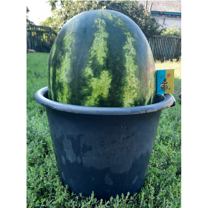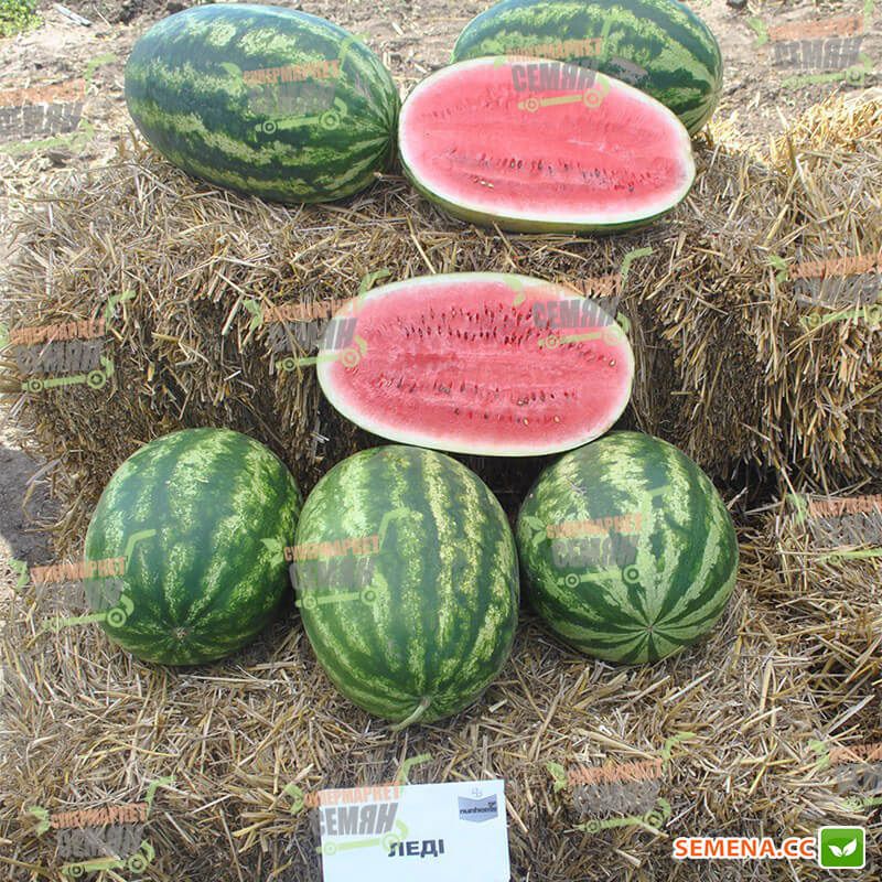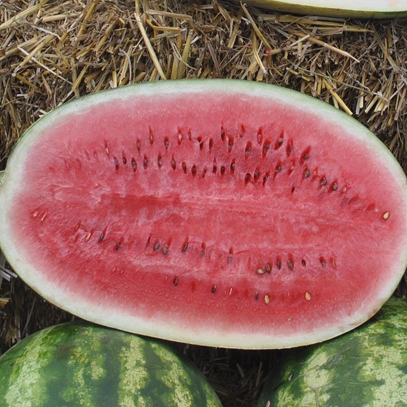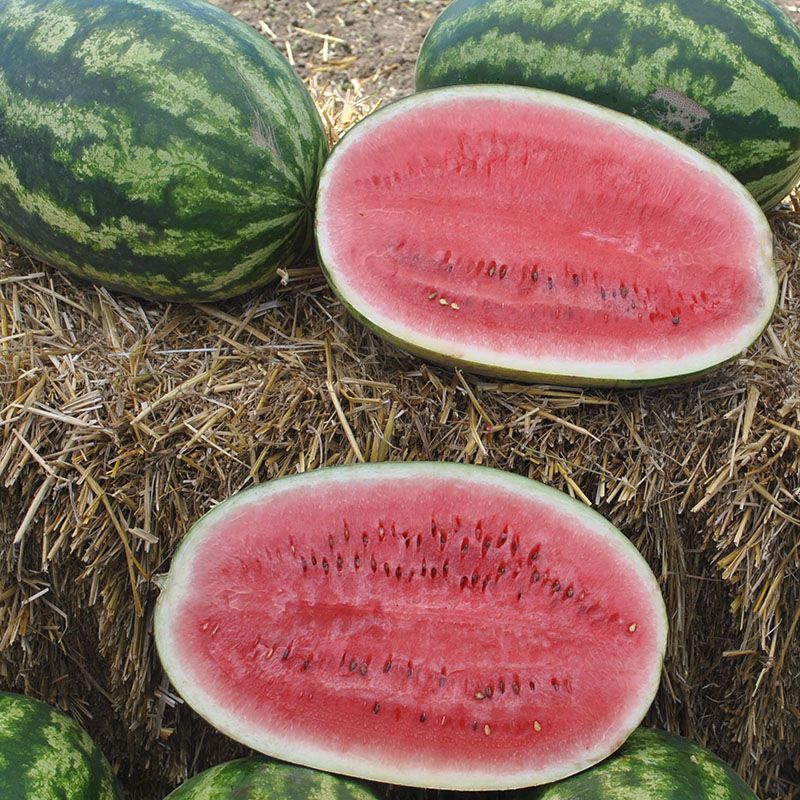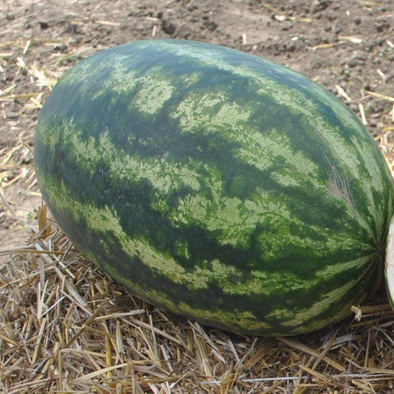 Характеристика плодов – Продолговато-овальные плоды в зеленую полоску. Однородные, средним весом 9-12 кг (до 15 кг). Мякоть с прекрасными вкусовыми свойствами, насыщенного красного цвета, сладкая, хрустящая, без белых волокон.