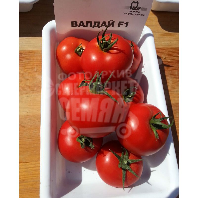 Валдай F1 семена томата полудетерминантного (Nunhems). Ультрараннеспелый (40-45 дней) полудетерминантный томат с ранней отдачей урожая. Благодаря тому, что у растения короткие междоузлия, оно идеально для низких теплиц. Плоды округлые, немного приплюснутой формы, весом 130-160 гр, без зеленого пятна у основания, однородные по размеру и окраске (внутренней и внешней). Изумительные вкусовые качества. Хорошая транспортабельность и лежкость. Гибрид Валдай F1 без проблем завязывает плоды в неблагоприятных условиях. Толерантен к вертицилезу, ВТМ, фузариозу 0,1 и нематоде.