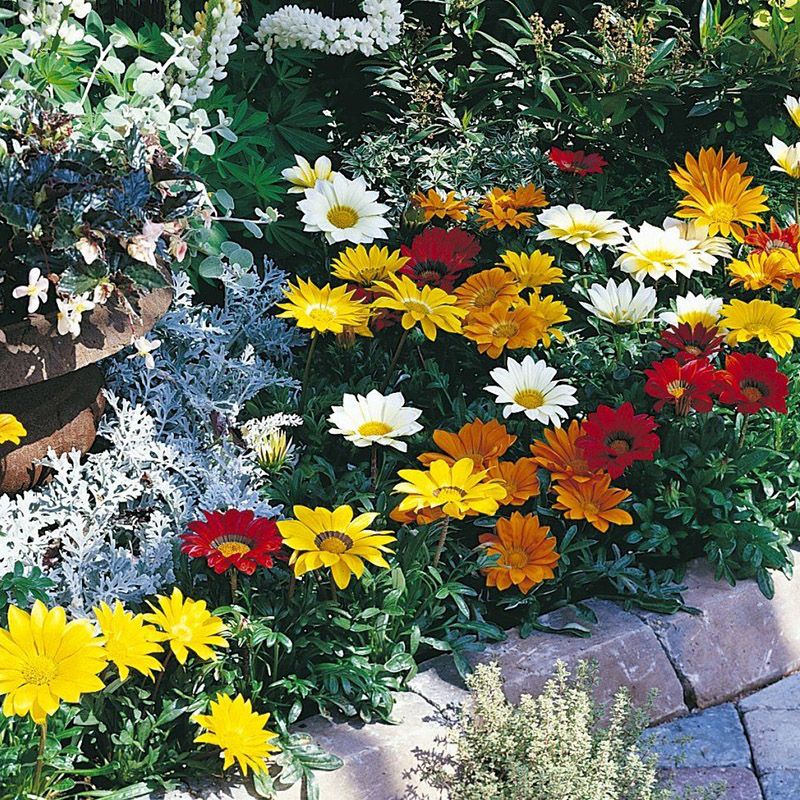 На солнечных клумбах цветы газании Газу F1 создают незабываемые цветовые акценты.