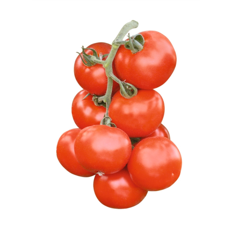 Плоды плоско - округлые, ярко-красного цвета, блестящие, массой 140-160 гр. По сравнению с другими гибридами формирует на 1-2 кисти больше к шпалере.