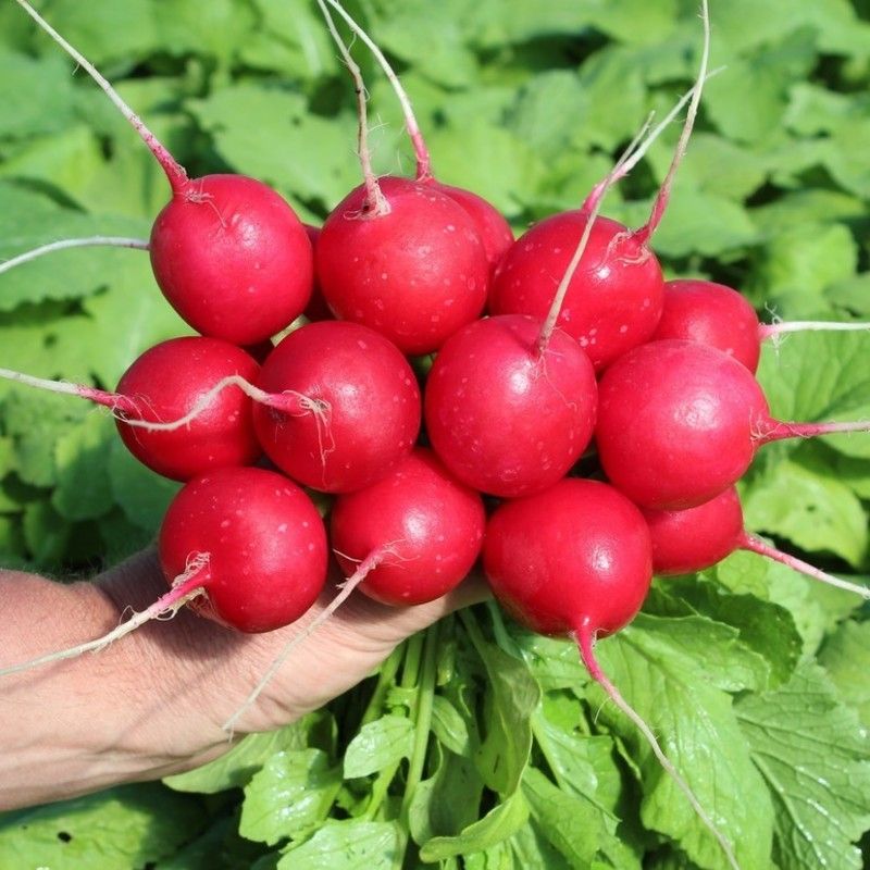 Гибрид редиса с очень ранними сроками созревания, рекомендован для всесезонного выращивания в открытом, защищенном грунте. Округлой формы. Крепкая, компактная ботва. Гибрид пригоден для реализации пучками. Корнеплоды крупные, темно-красного цвета, однородной формы, корешок тонкий. Обладает плотной.без пустот мякотью, с отменными вкусовыми свойствами. Редис обладает сильной устойчивостью к растрескиванию и стрелкованию.