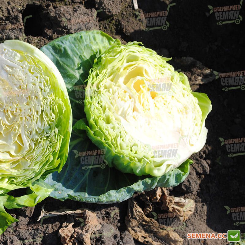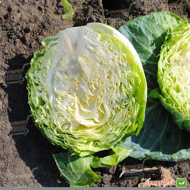 Цвет темно-зеленый, кочан белоснежный. Средний вес 2-3 кг. Плотный, транспортабельный кочан. Короткая кочерыга. Высокая устойчивость к растрескиванию. Долго стоит в поле.