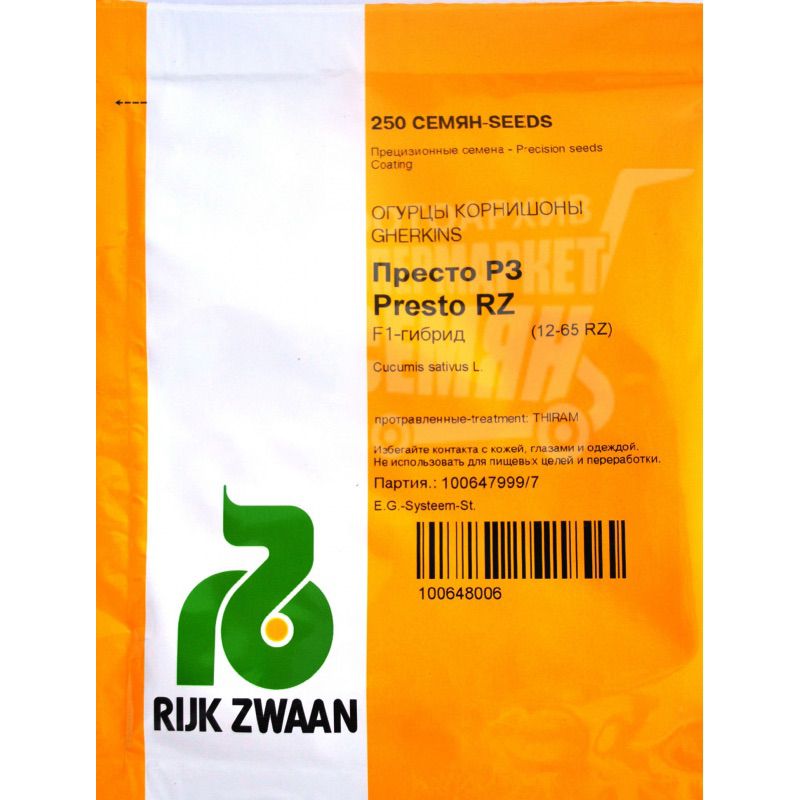 Престо F1 - семена огурца-корнишона партенокарпического от Rijk Zwaan. Гибрид среднераннего срока, предназначен для свежего рынка и для промышленной переработки. Имеет мощную корневую систему. Растение хорошо развито, обладает хорошей регенеративной способностью. Толерантен к корневым гнилям, гибрид устойчив к стрессовым условиям возделывания. Имеет отличное качество плодов. Период вегетации 45 дней.