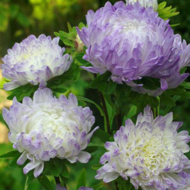 Астра китайская пионовидная Дюшес бело-голубая (Callistephus chinensis Duchesse) – однолетнее растение высотой 70-80 см.