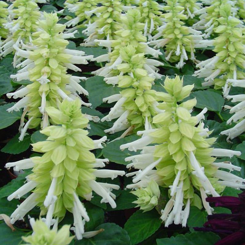 Сальвия блестящая Аморе белая (Salvia splendens Amore white) – раннецветущая серия с плотными и однородными цветами.