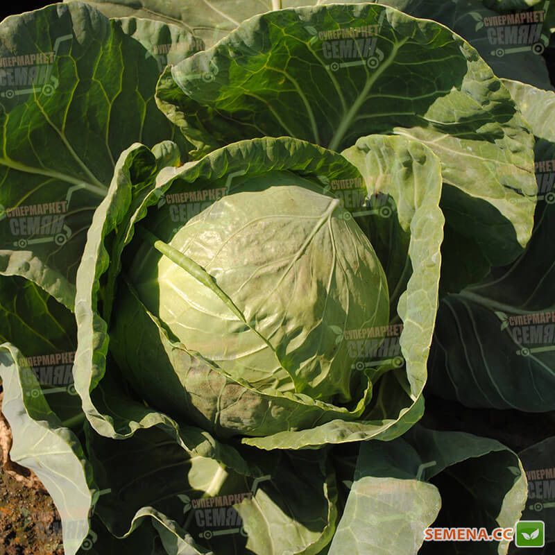 Головка плотная, округлой формы, зеленого цвета. Головка весит около 2 килограмм.
