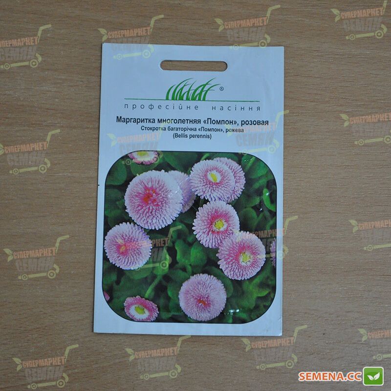 Маргаритки Помпон розовый (Pink) - декоративное травянистое растение, формирует махровые соцветия – корзинки 6 см в диаметре розового цвета.