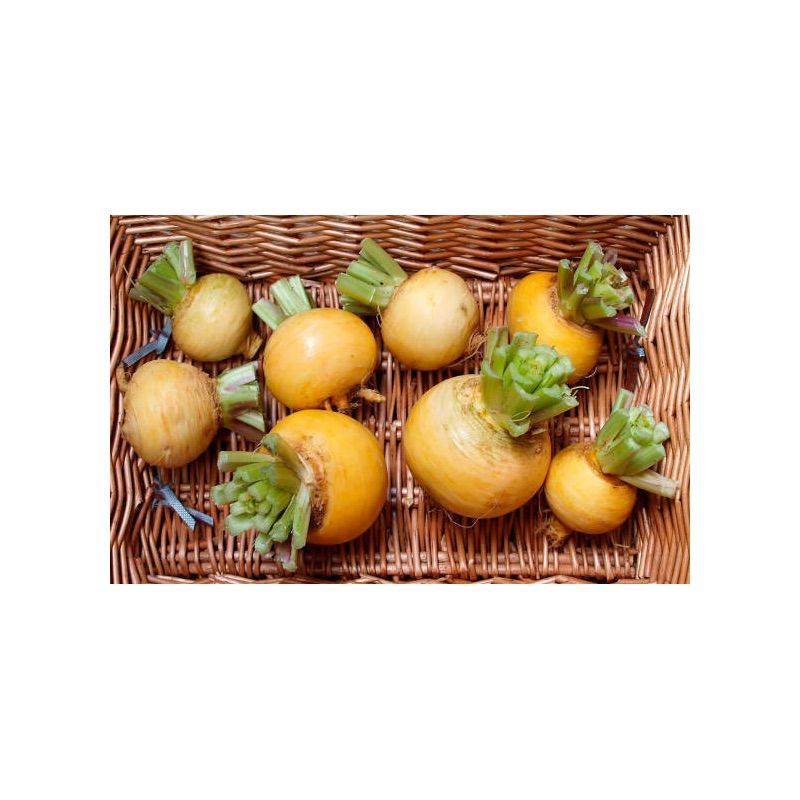 Голден Бэл – сорт репы от компании Элитный Ряд. Среднеранний срок вегетации (60-84 дня). Формирует плосковато-округлые плоды с выгнутым донцем и гладкой, глянцевой поверхностью. Плоды обладают золотистой расцветкой. Вес одной репы – 60-150 г.