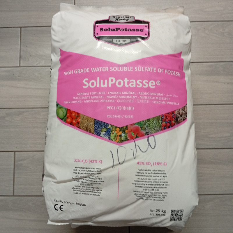 Это самое популярное удобрение. Он является безхлорным, не содержит азот. Это удобрение состоит из калия и серы. Сульфат калия имеет формулу K2SO4. Он играет очень важную роль в синтезе белков, витаминов, энзимов. Имеет отличные товарные качества, хорошее влияние на устойчивость растения к засухе, низким температурам, а также вредителям грибковым заболеваниям. Детальнее с данным товаром можно ознакомиться по фотографии.