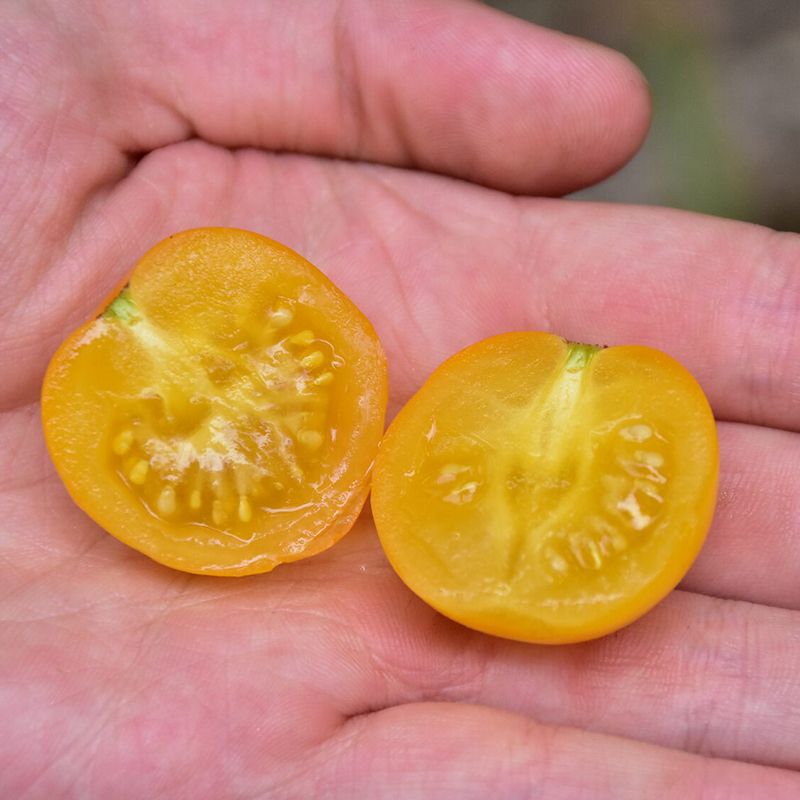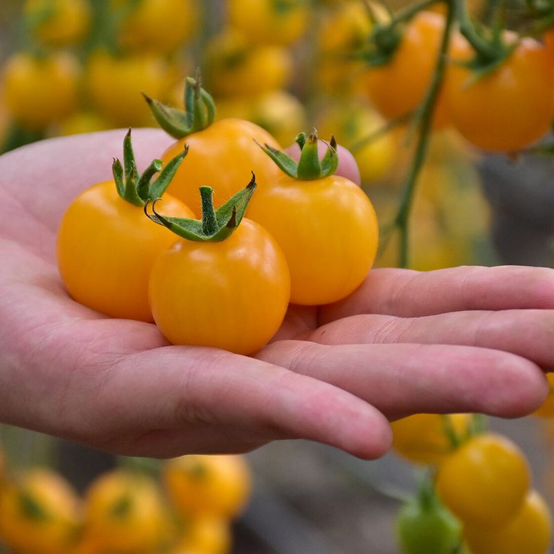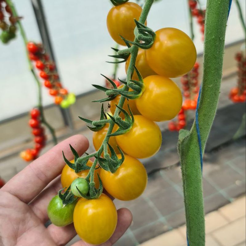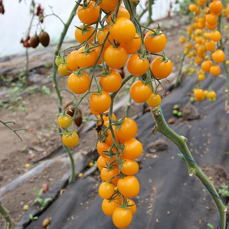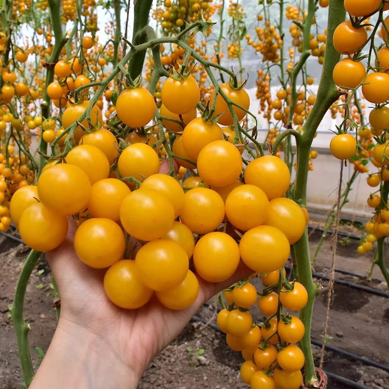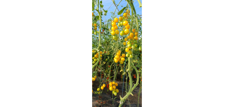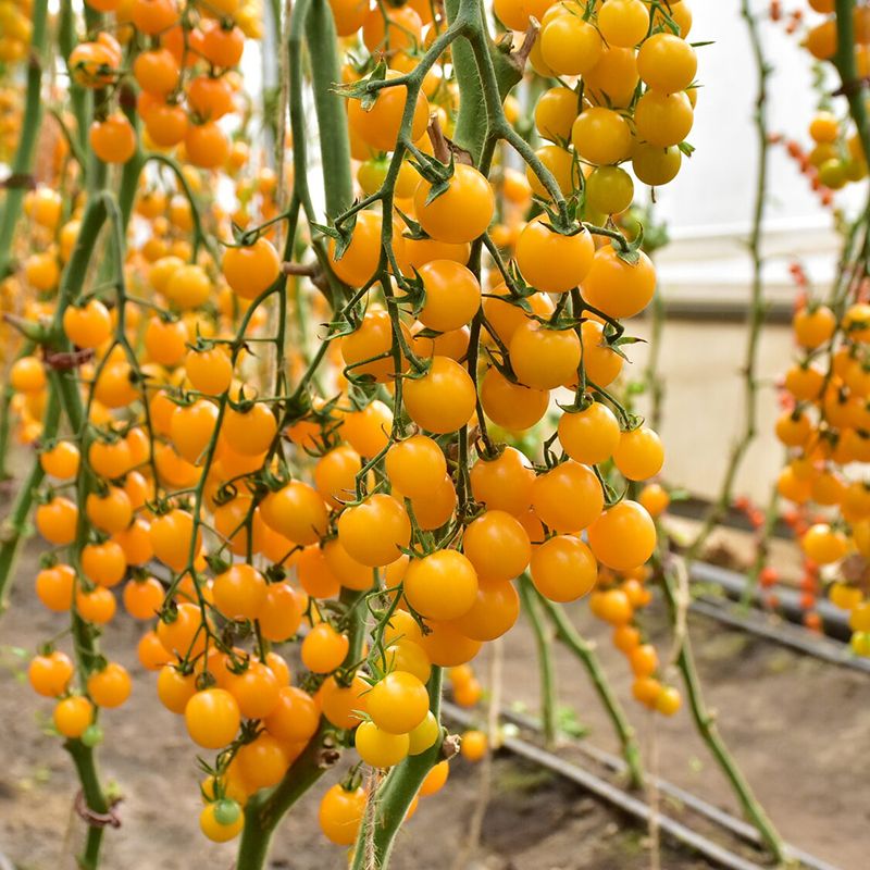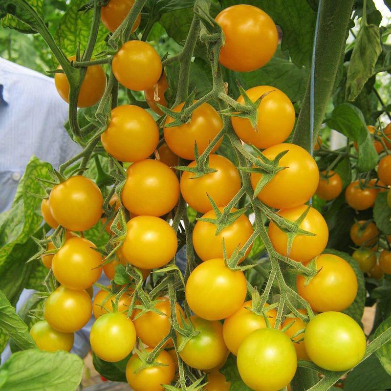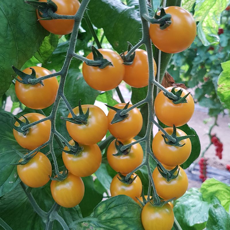Характеристика плода – Плоды золотисто-желтого цвета, идеально круглые, очень сладкие, средней массой 20-25 г и диаметром 28-30 мм. Сбалансированный вкус и высокое содержание сахара. Плоды выровнены, плотны, легко транспортируются, устойчивы к растрескиванию. Хорошая стойкость к растрескиванию. Кисточки длинные, множественные, с большим количеством плодов. На кисте формирует до 30 плодов. Кисть разветвлена надвое.
