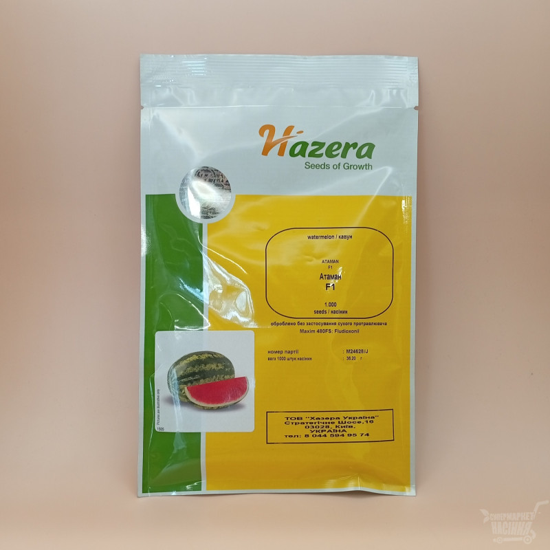 Атаман F1 - это ранний гибрид арбуза типа Кримсон Свит, у которого вегетационный период длится два месяца (при посеве семян сбор происходит на 60 - 65-й день).