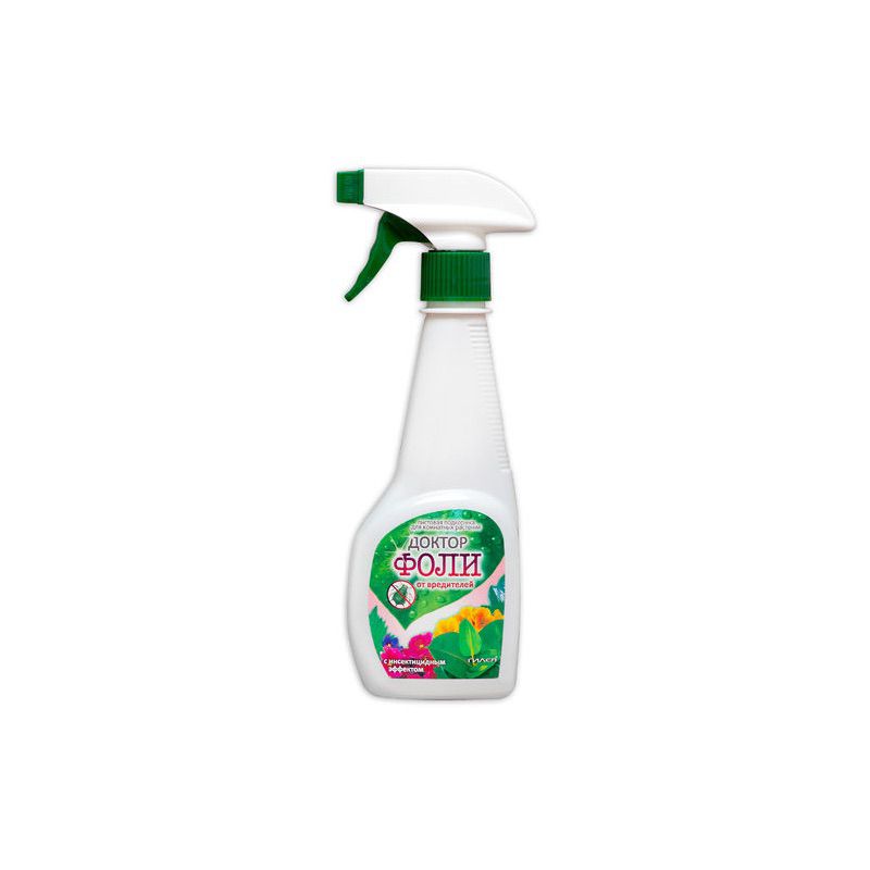 Доктор Фоли от вредителей - является готовой листовой подкормкой обладающей расширенным спектром действия для всех видов комнатных растений. Данный препарат обладает инсекто-акарицидными свойствами. Комнатные растения вредители поражают намного реже, чем в открытом грунте, но все же если это происходит, то они могут причинить серьезные неприятности. При первом появлении вредителей следует сразу же произвести обработку листовой части растения. При необходимости рекомендуется повторить. Желательно во время обработки переместить растение в нежилое помещение, так как данный препарат обладает специфическим запахом.