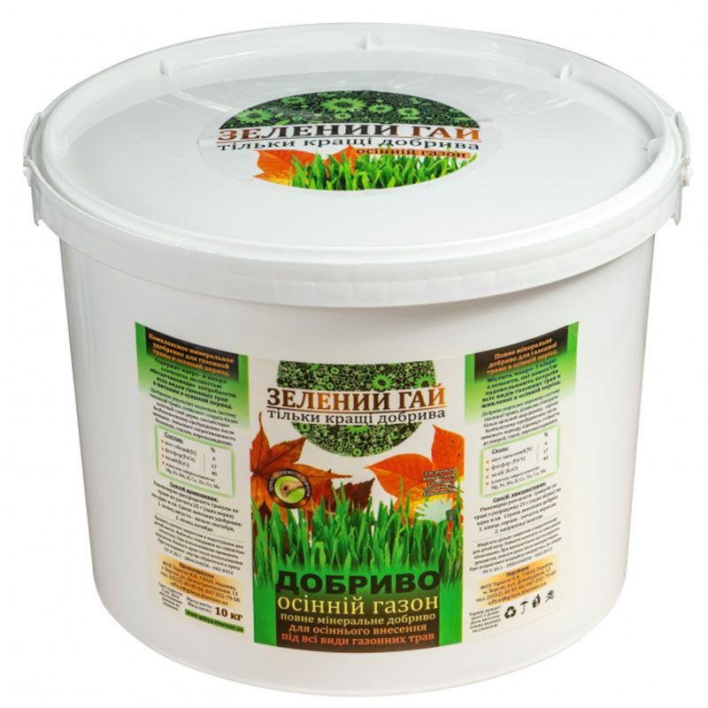 Удобрение Зеленый гай Осенний газон – полное минеральное удобрение для газонной травы в осенний период. Содержит макро- и микроэлементы, которые полностью удовлетворяют потребности всех видов газонных трав в питании в осенний период.