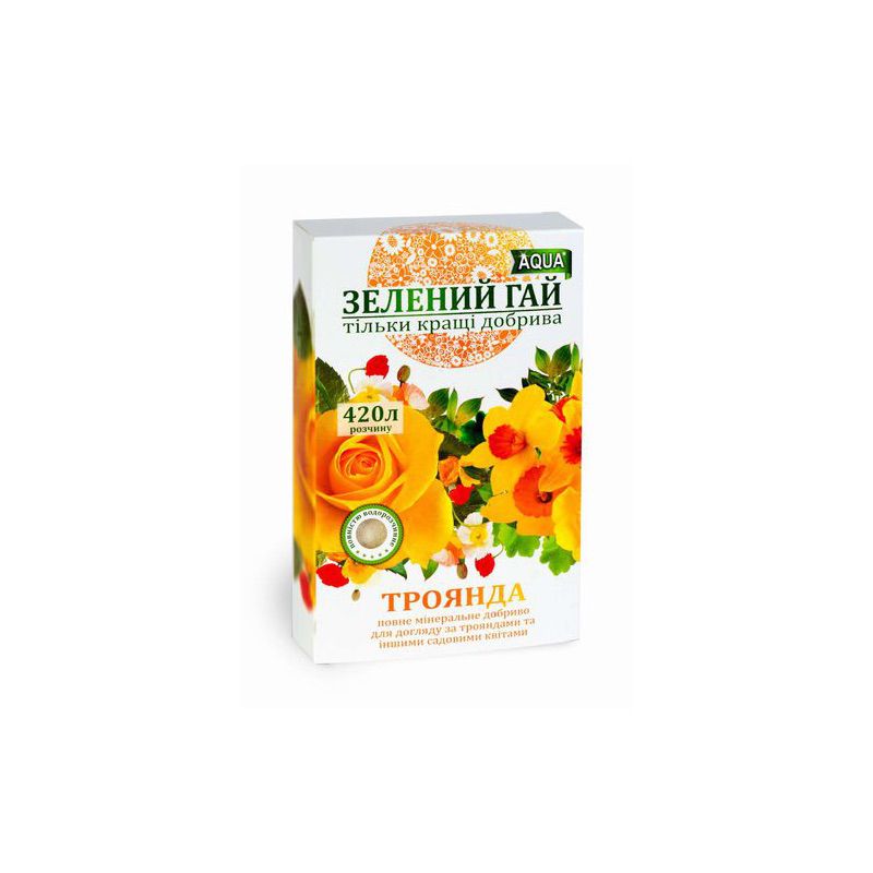 Зеленый Гай Аква Роза - это быстродействующее минеральноея удобрение, которое используется для роз и других садовых цветов. Данное удобрение стимулирует быстрый и равномерный рост. Своим воздействием повышает в значительной мере сопротивляемость к неблагоприятным факторам внешней среды. Стимулирует корнеобразование и рост листьев. Поддерживает яркость листвы и цветков.