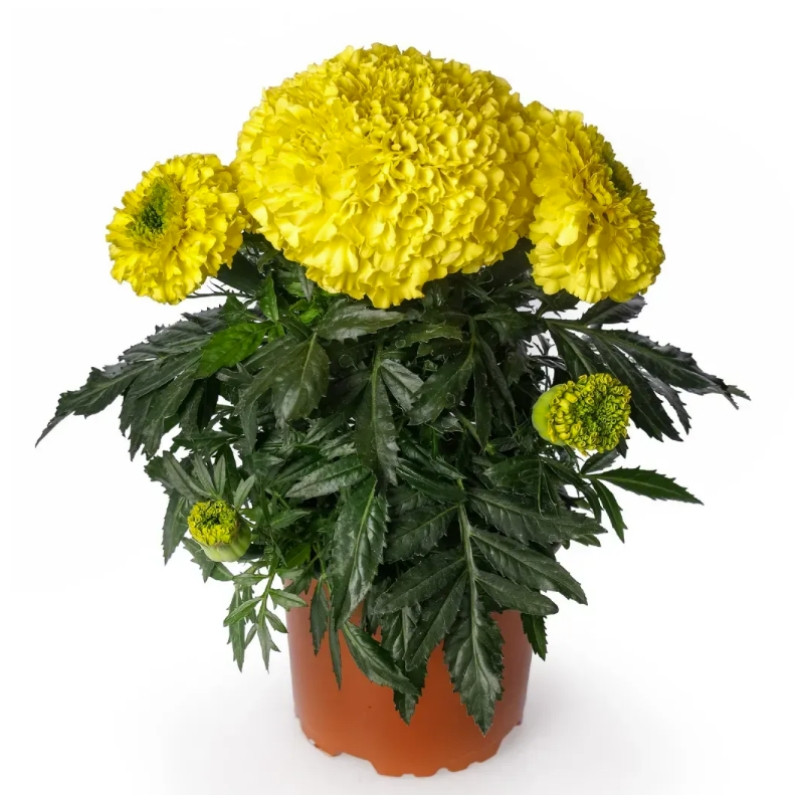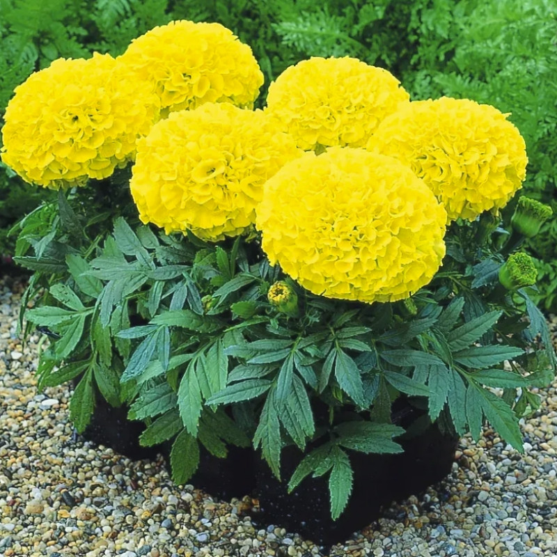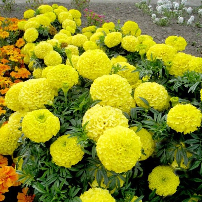 Бархатцы Антигуа F1 лимонные (Tagetes patula Chica) компании Syngenta - раннецветущая серия с крупными махровыми цветами.