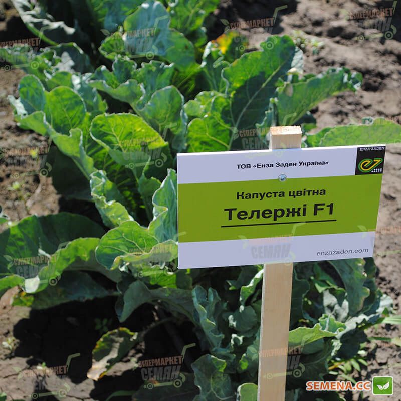 Среднеспелая цветная капуста Телержи F1 созревает уже на 80-ые дни после высадки. Кочаны имеют округлую форму, белоснежный цвет, они плотные, весят около 2 килограммов. Фотография товара предоставлена выше.