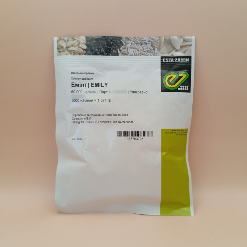 Компактный сорт базилика Эмили имеет короткие междоузлия. Листья темно-зеленого цвета, среднего размера, удлиненные, выпуклые, имеют очень интенсивный аромат.