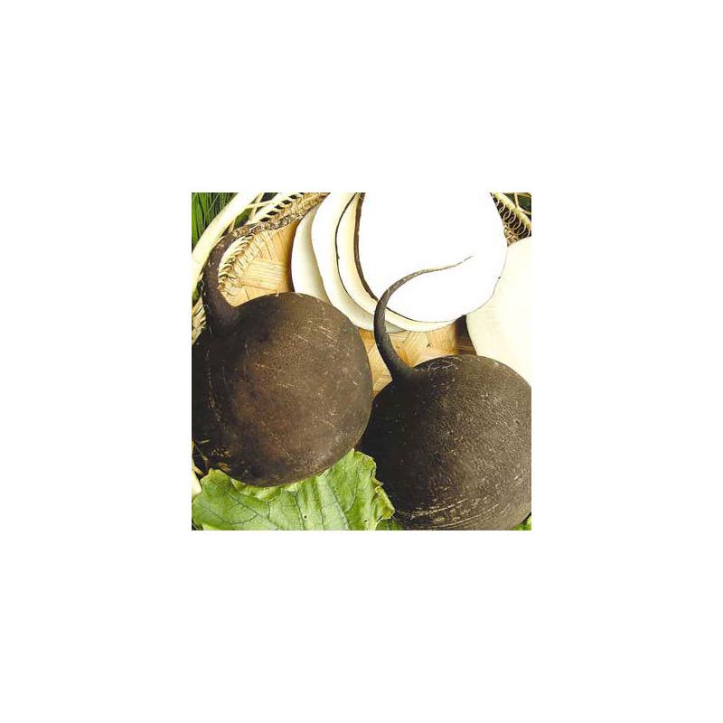 Круглая, черная редька с белой мякотью, подходит для позднего сбора урожая. Очень вкусный овощ, который очень легко выращивать. Содержит много различных минералов, таких как кальций, фосфор, калий и витамины B и С.