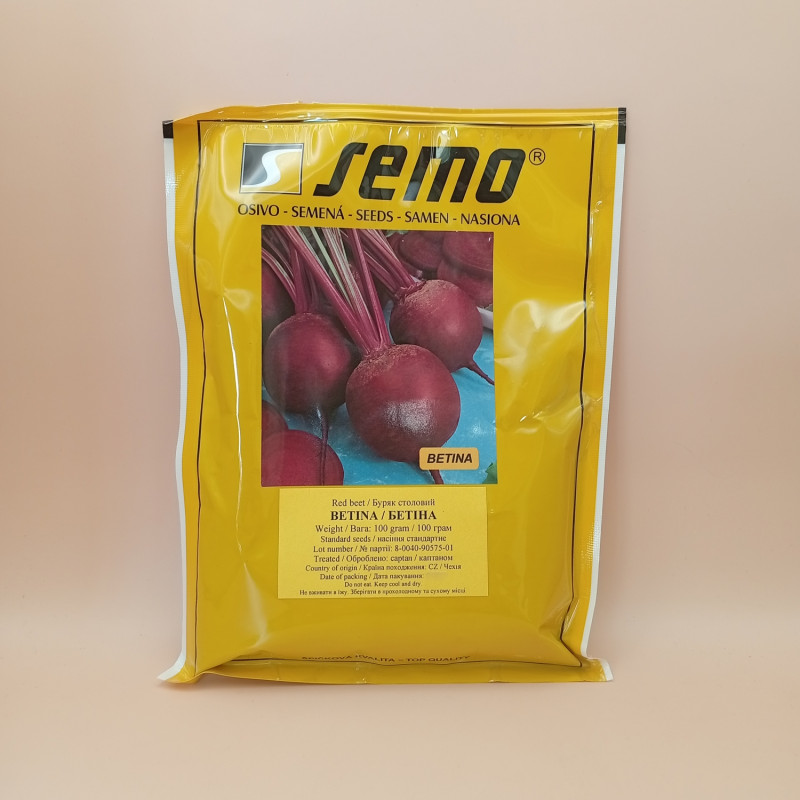 Бетина - это сорт свеклы, типа Детройт. Период вегетации 120 дней. Плод круглый гладкий. Вес плода - 200-250 грамм. Имеет темно-красную мякоть, без колец. Высокие вкусовые качества. Лёжкая. Отличается высокой урожайностью. Устойчив к вирусам. Используется в кулинарии.