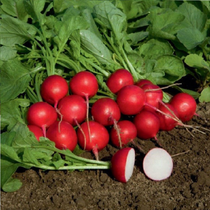 Гранат - ранний сорт редиса. Период вегетации 20 дней. Плоды крупные, круглые, темно-красного цвета; ботва редкая; мякоть хрустящая; корень имеет очень быстрый рост. Устойчивость к стрелкованию. Очень вкусная. Отдает предпочтение росту в открытом грунте, пленочных теплицам. Высаживать семена надо в апреле-августе; сбор урожая - май-сентябрь.