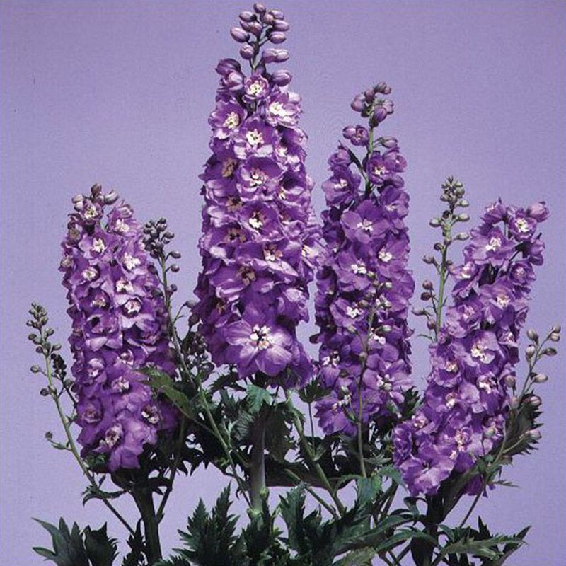 Дельфиниум Магический Фонтан F1 лавандовый с белым глазком (Delphinium elatum Magic Fountain) – высокорослая серия с махровыми цветами.