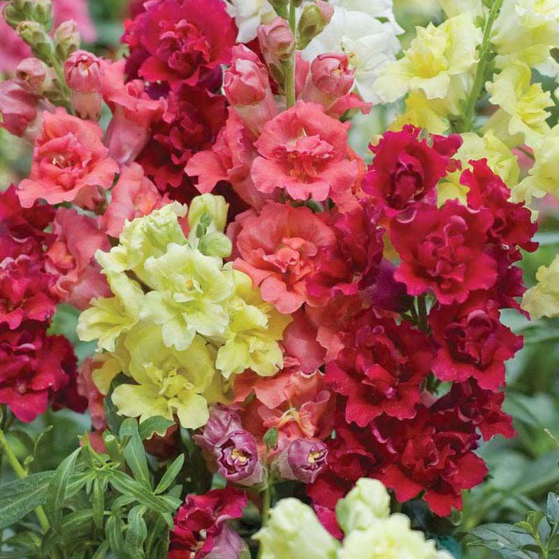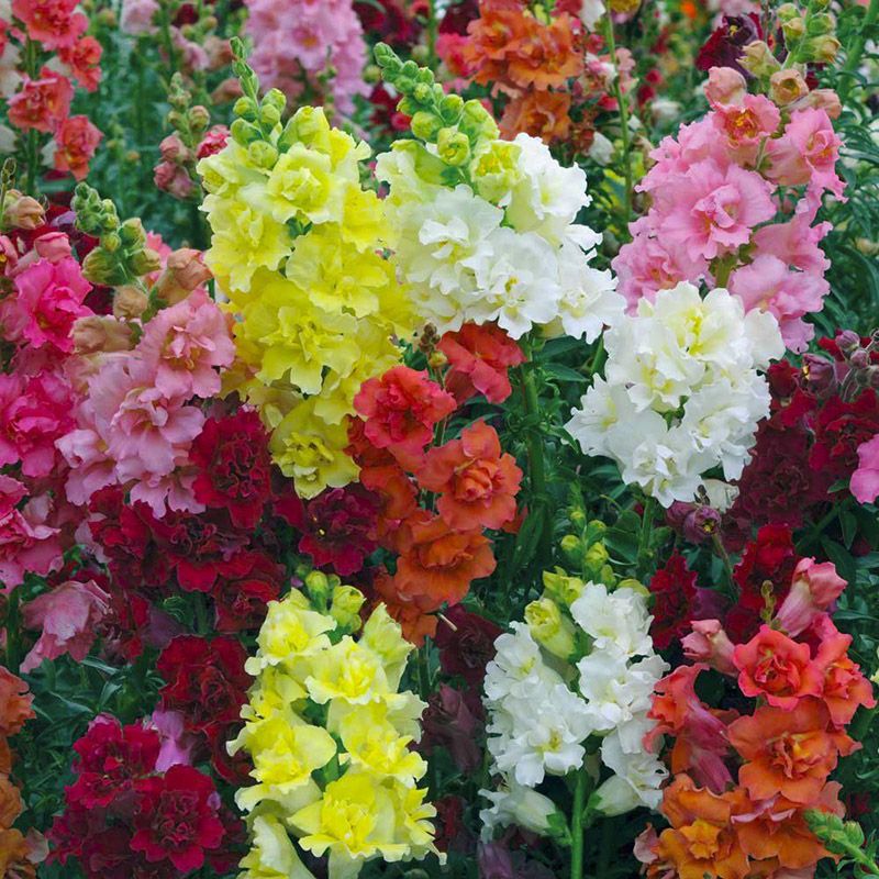 Антирринум (Львиный зев) Мадам Батерфляй F1 смесь (Antirrhinum Madame Butterfly F1 mix) – высокорослая серия с крупными махровыми цветами ярких окрасок.