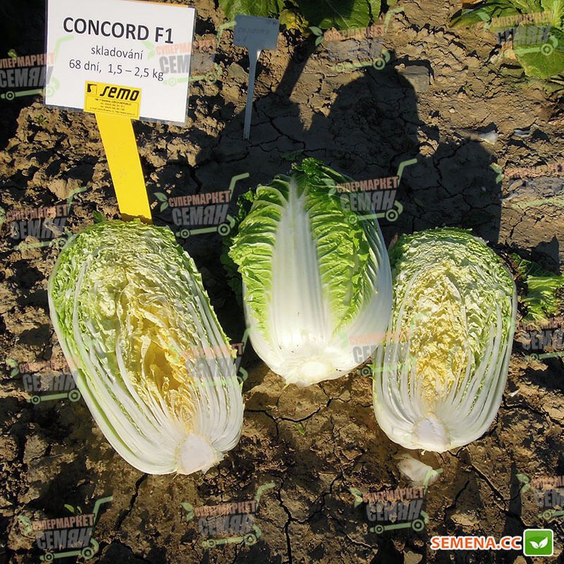Конкорд F1 – гибрид капусты пекинской от чешского производителя Semo. Является среднепоздним, предпочитает открытый грунт под пленкой. Созревает через 70 дней после высадки рассады.