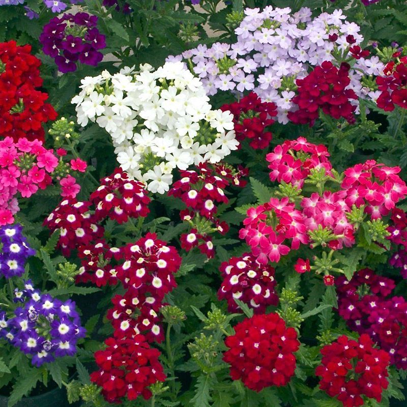 Вербена гибридная Обсешн F1 смесь (Verbena hybrida Obsession F1 mix) – очень однородная, ранняя и обильно цветущая серия, которая отличается высокой толерантностью к мучнистой росе.