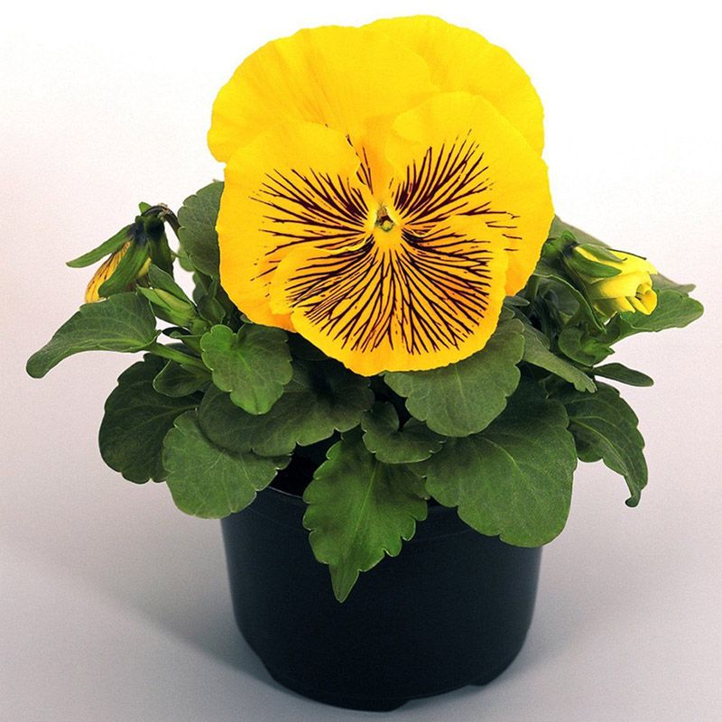 Виола виттрока Кетс F1 желтая (Viola wittrockiana Cats F1 yellow) – новый гибрид с уникальной расцветкой не оставит Вас равнодушными.