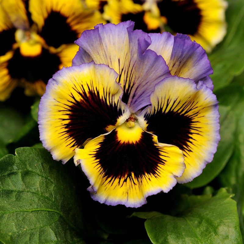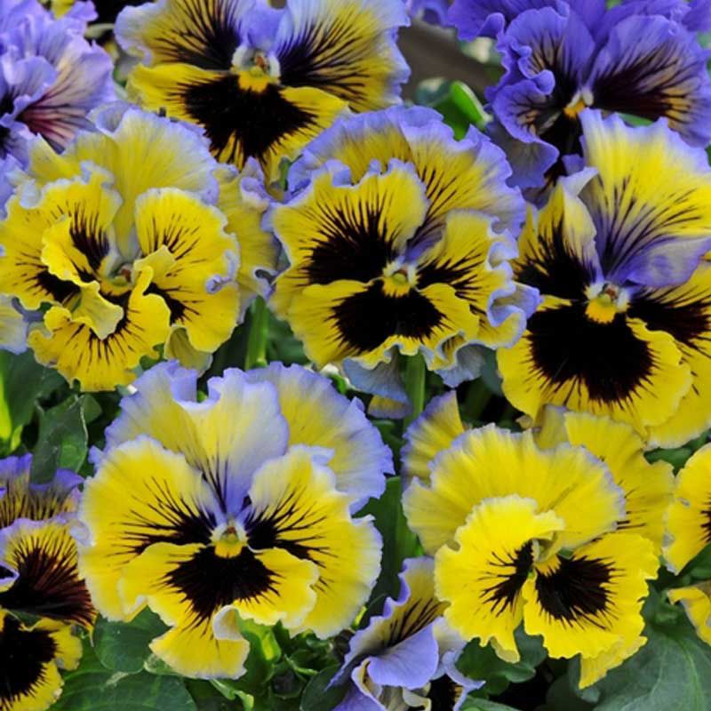 Виола виттрока Фризли Сизли F1 желто-синяя (Viola wittrockiana Frizzle Sizzle F1) – это многократно улучшенный гибрид виолы сорта Рококо, обладающий невиданной гофрированностью.
