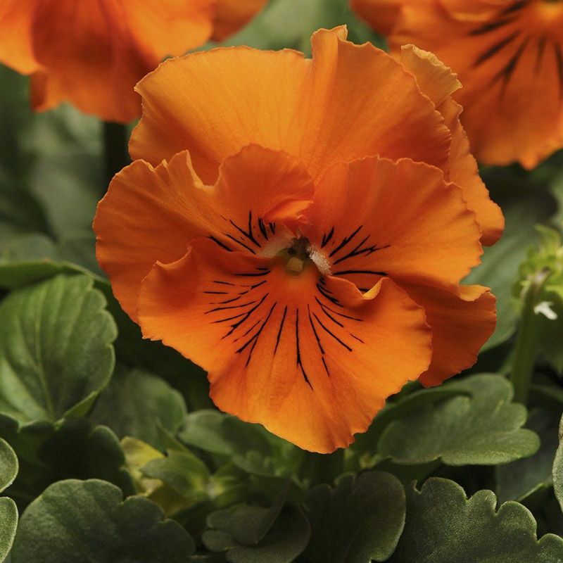 Виола виттрока Фризли Сизли F1 оранжевая (Viola wittrockiana Frizzle Sizzle F1 orange) – это многократно улучшенный гибрид виолы сорта Рококо, обладающий невиданной гофрированностью.