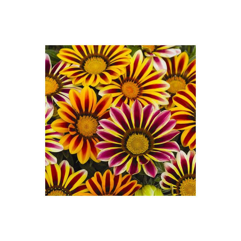 Газания Фрости Кисс F1 флейм микс (Gazania rigens Frosty Kiss F1) – раннецветущая и наиболее однородная серия среди существующих на рынке газаний с серебряной окраской листьев.
