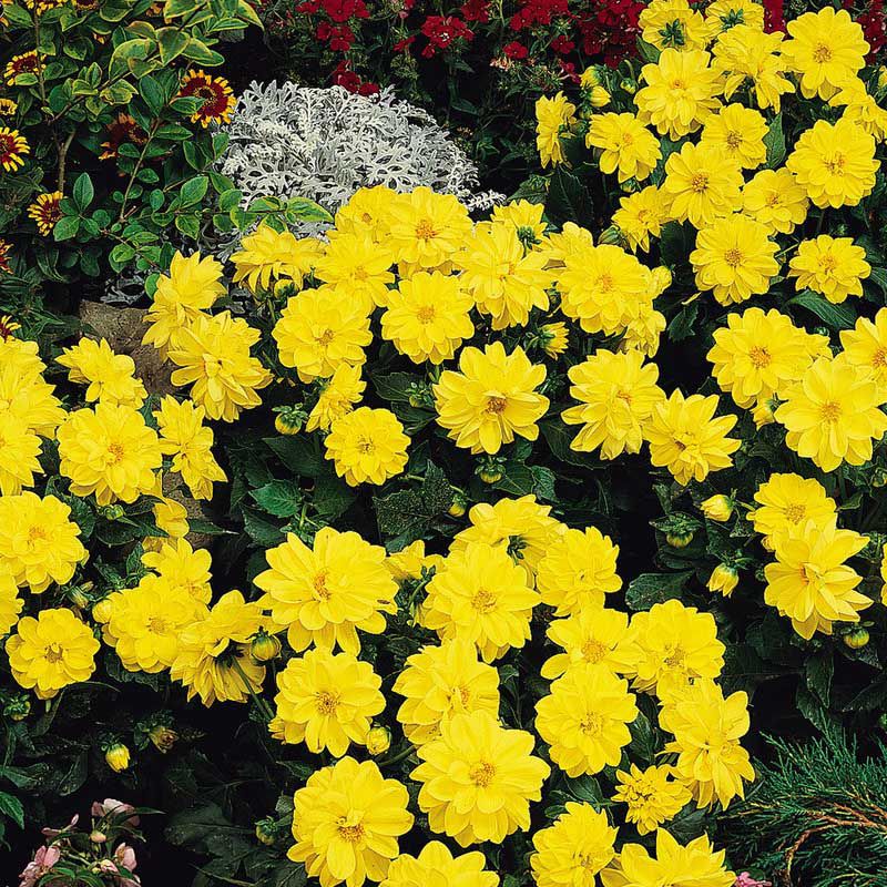Георгина Фигаро F1 желтая (Yellow Shades) - cерия с компактной формой куста и крупными махровыми цветами.