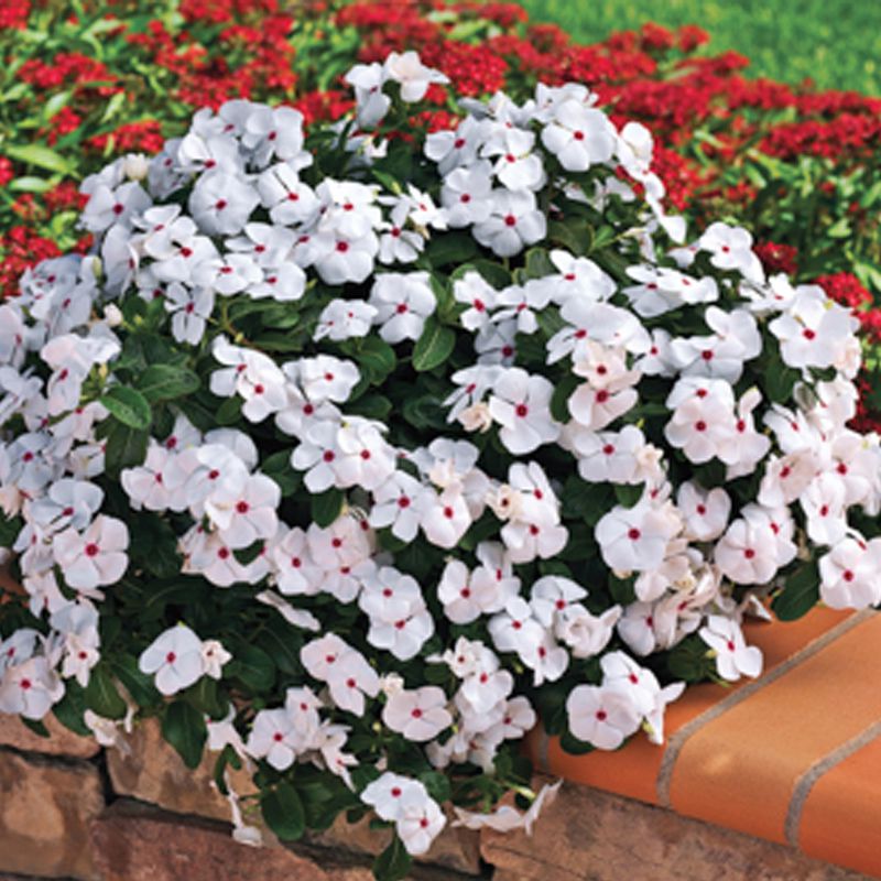 Катарантус ампельний Кора Каскад F1 полька дот - кусты компактные, высота 30-40 см.