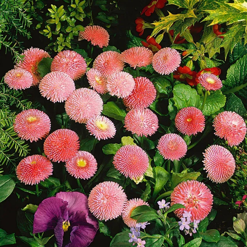 Маргаритка Тассо пинк (розовая) - усовершенствованная серия помпонного типа. Густо махровые цветки Тассо достигают 5 см в диаметре, что в 2 раза больше обычных Помпонетт!
