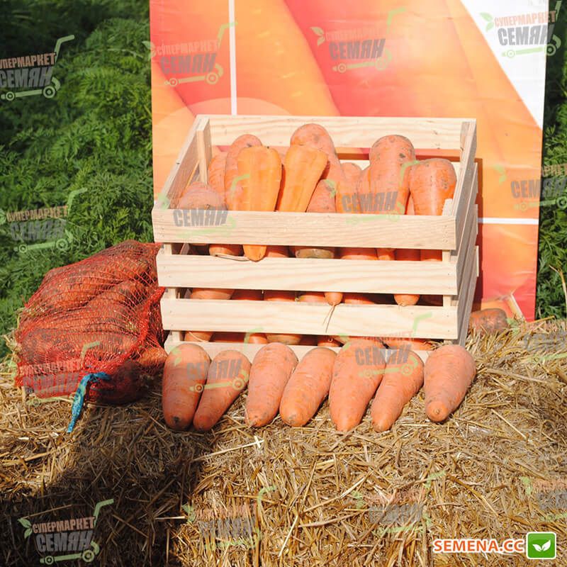 Тип моркови: Шантане. Корнеплоды конической формы, длиной 16 см, оранжевого цвета.
