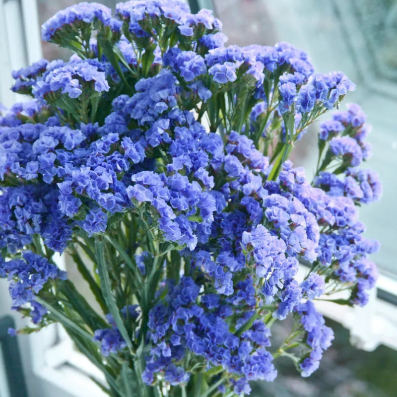 Статица Голубой горизонт - однолетнее растение, высотой 60-70 см, с прямостоячими стеблями, разветвленными в верхней части.